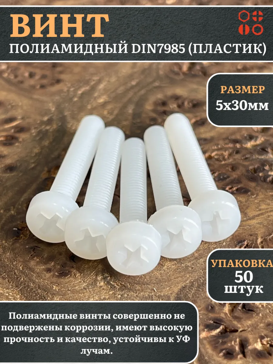 Винт полиамидный 5х30 мм DIN7985 (пластик), 50 шт.