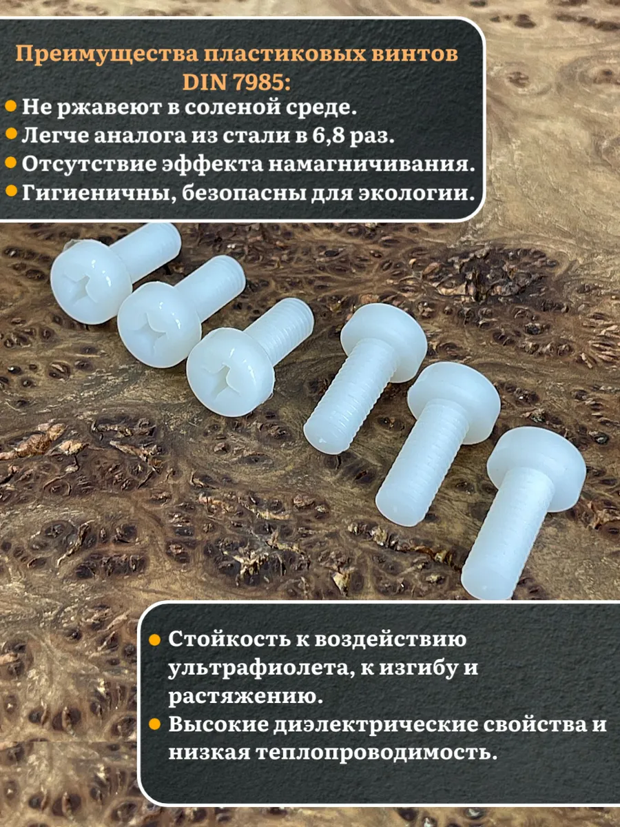 Винт полиамидный 8х10 мм DIN7985 (пластик), 50 шт. вп8107985ф50 1 шт.