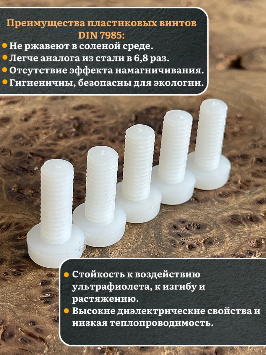 Винт полиамидный 8х20 мм DIN7985 (пластик), 10 шт.