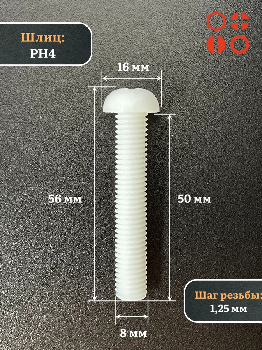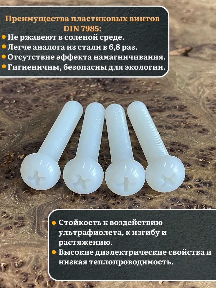 Винт полиамидный 8х50 мм DIN7985 (пластик), 4 шт.