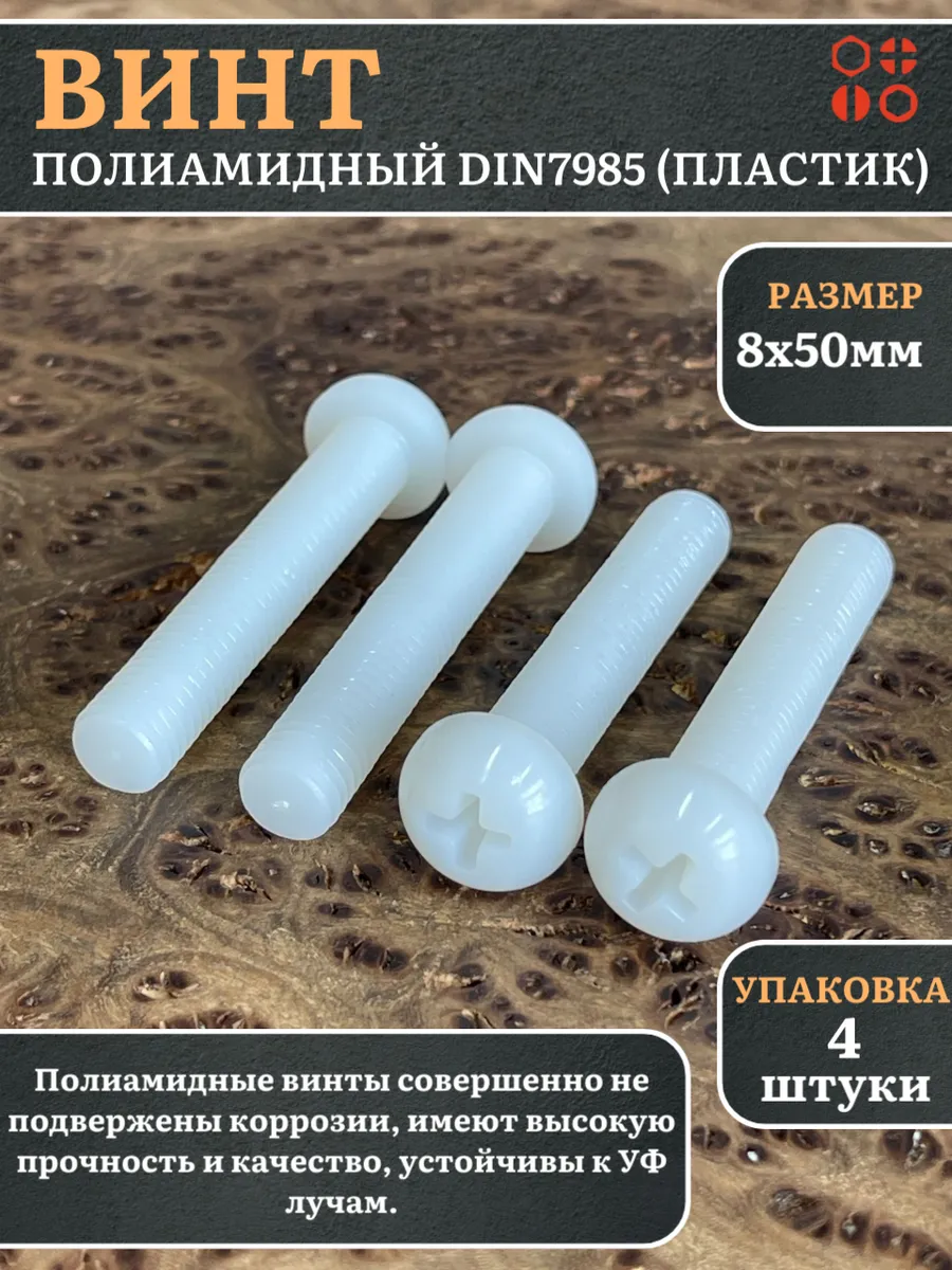 | Винт полиамидный 8х50 мм DIN7985 (пластик), 50 шт. | вп8507985ф50 | 1 шт. |