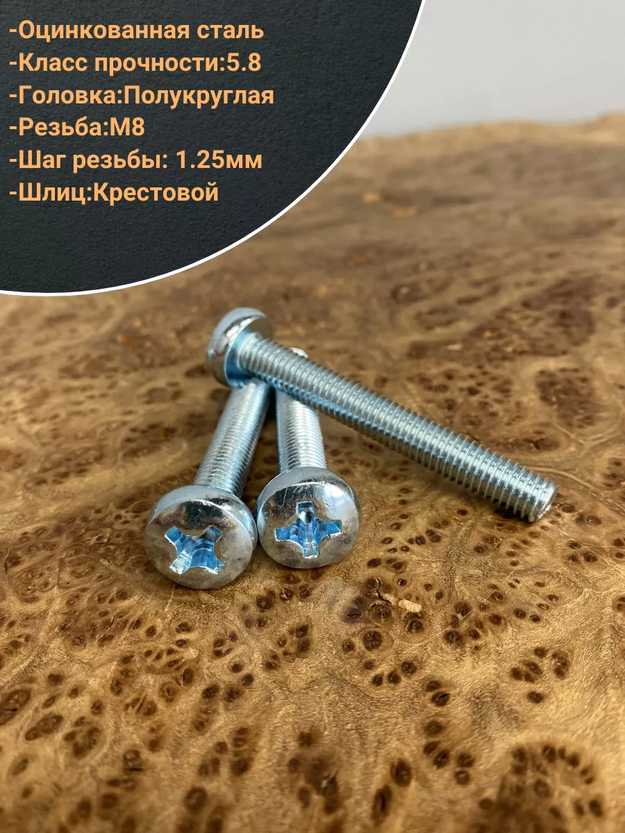 Винт с полукруглой головкой М8х50 ОЦ DIN7985, 10 шт.
