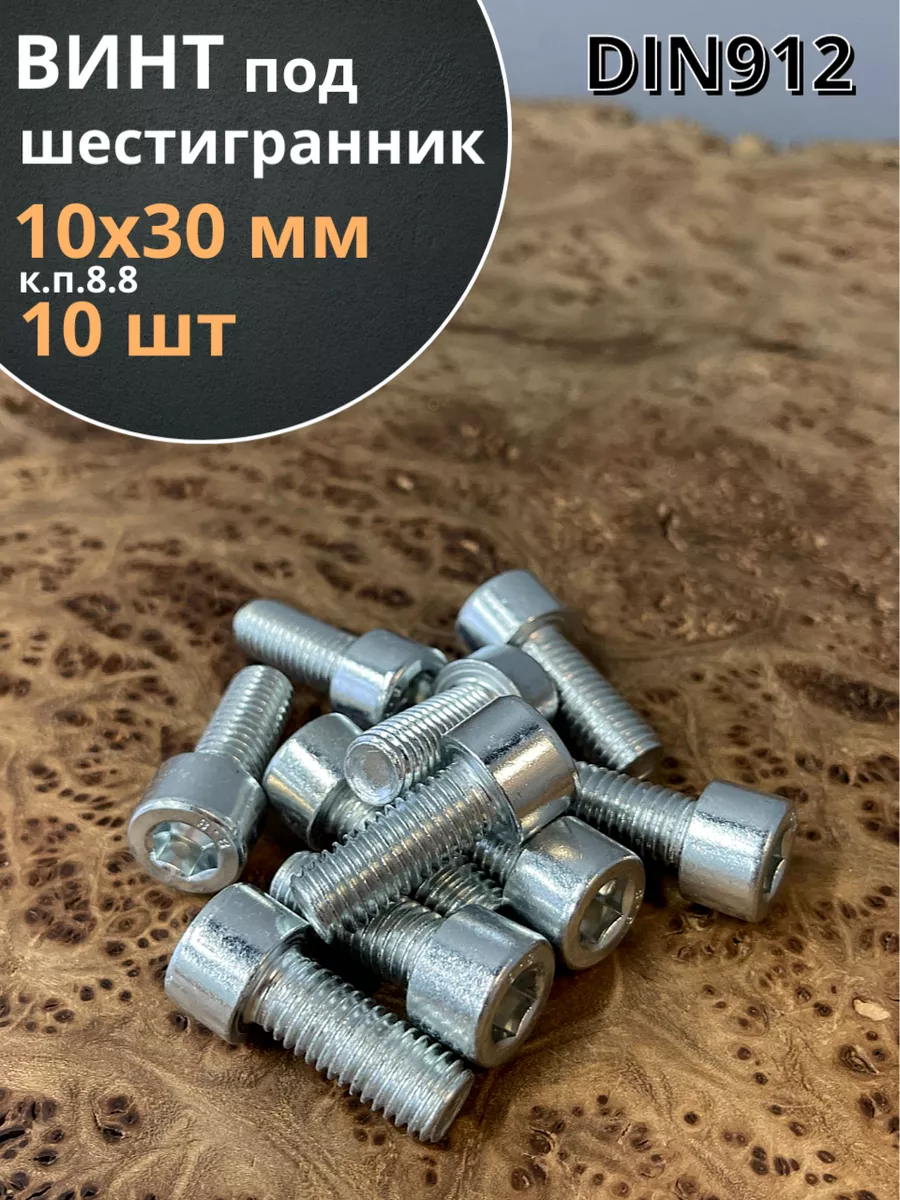 Винт под шестигранник ПР 10х30 мм ОЦ к.п.8.8 DIN912, 10 шт.