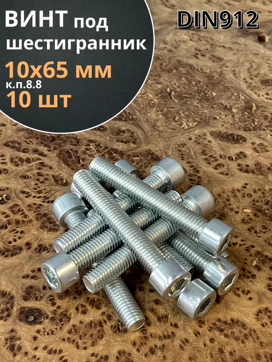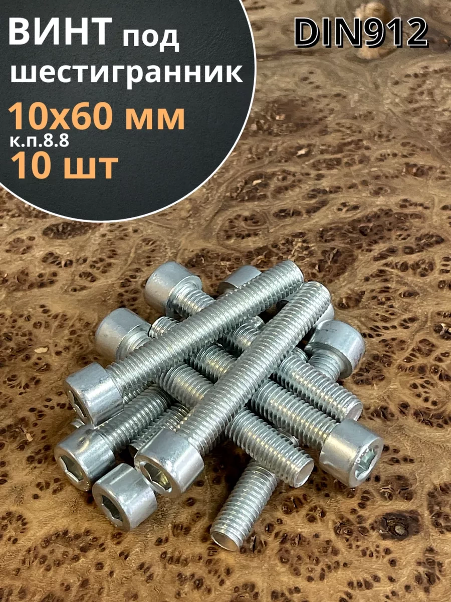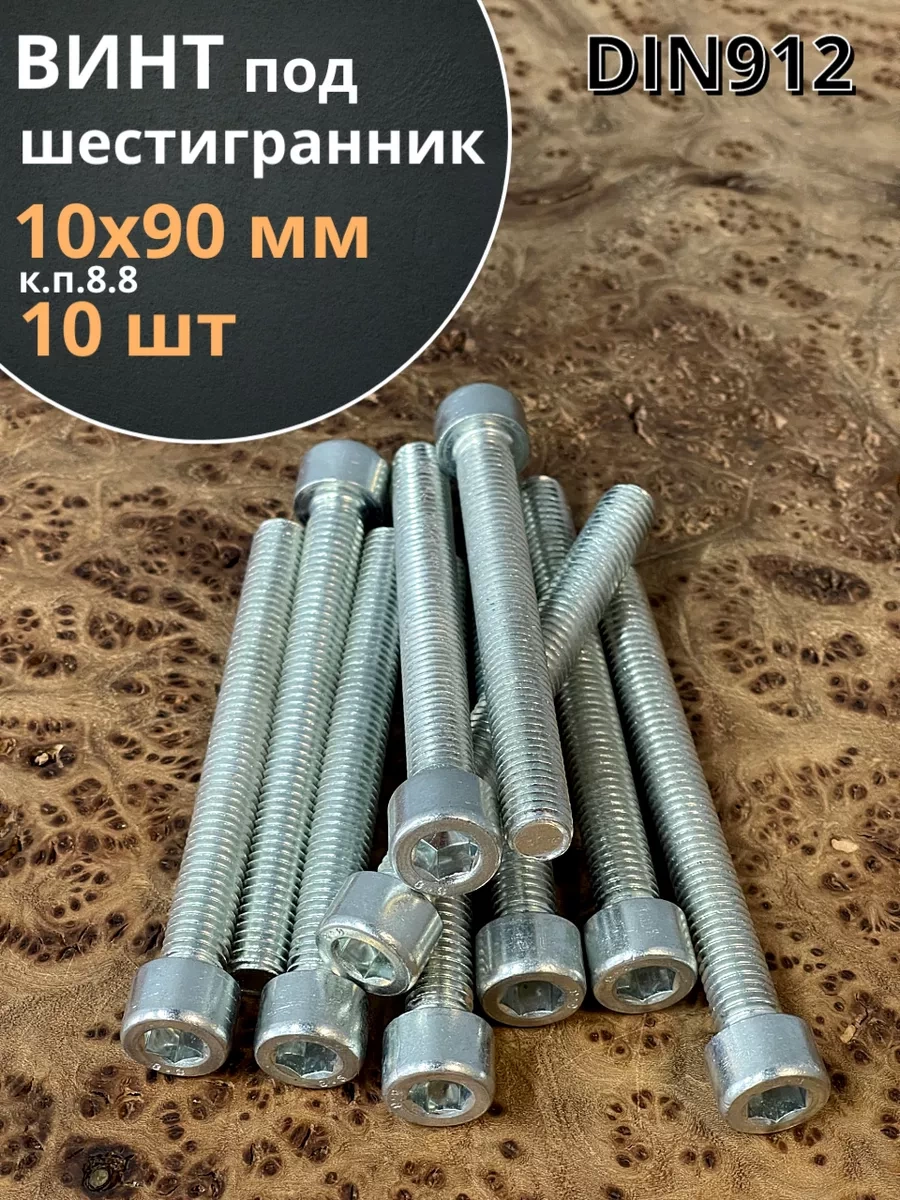 Винт полная резьба, с внутренним шестигранником, высокопрочный 8.8 оцинкованный DIN912 10 шт