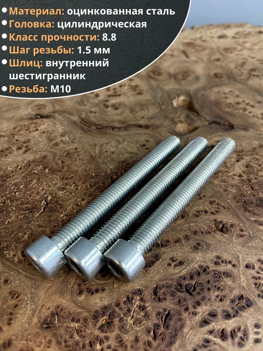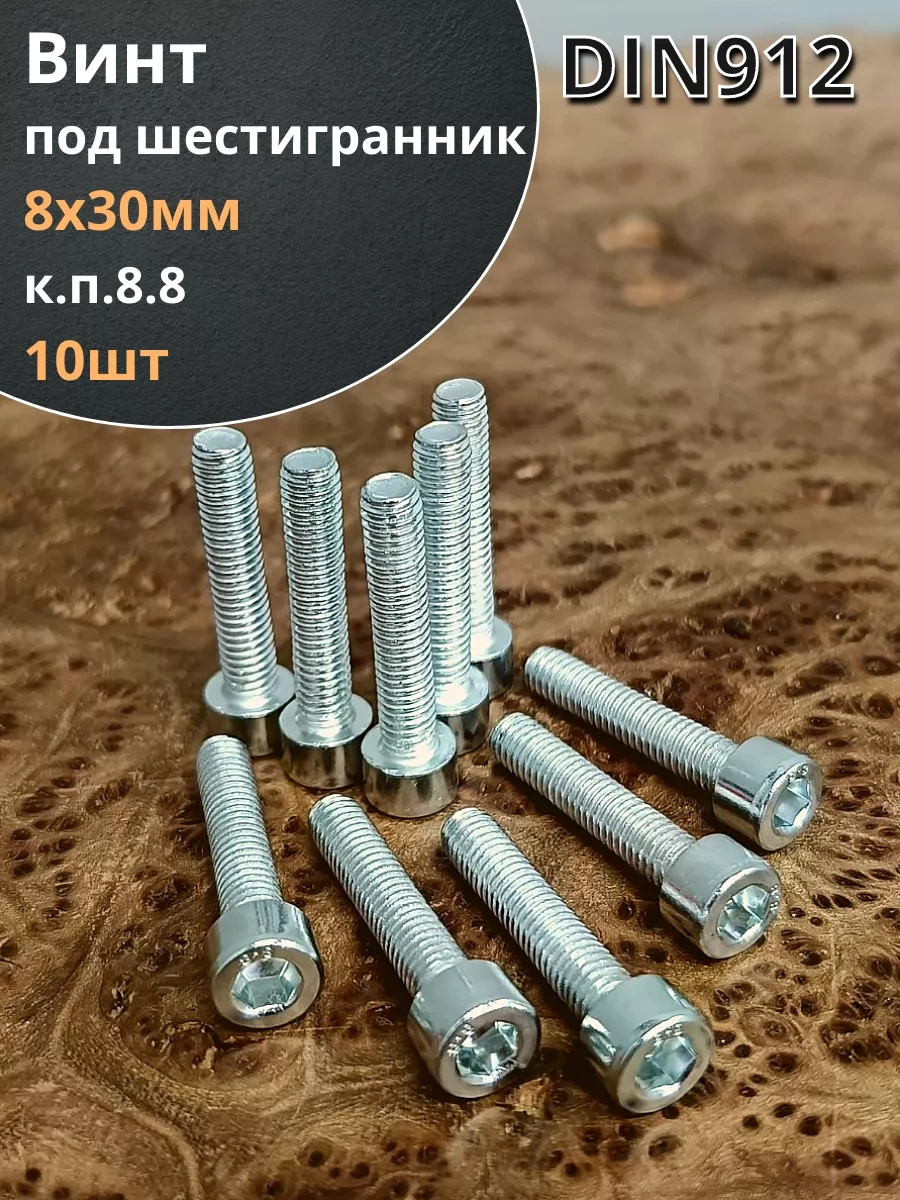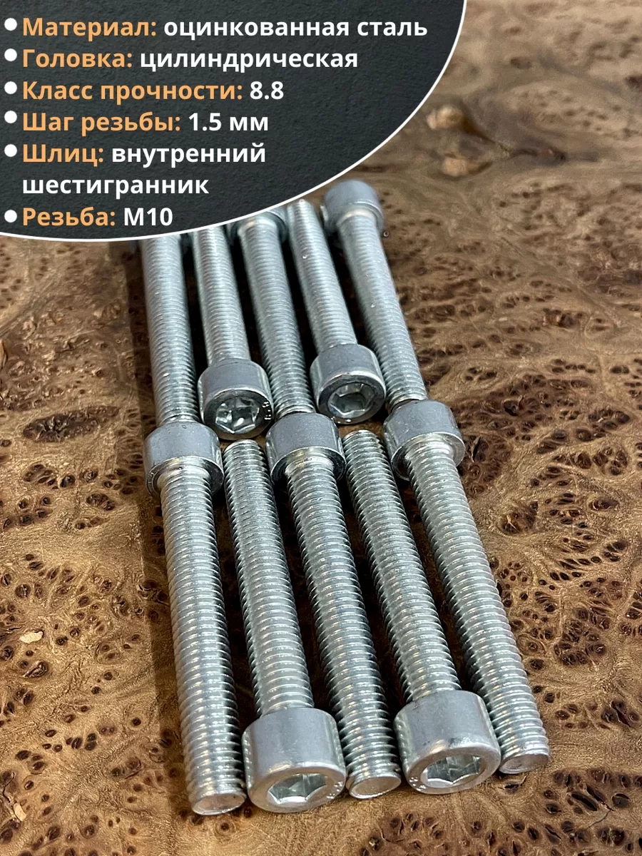 Винт полная резьба, с внутренним шестигранником, высокопрочный 8.8 оцинкованный DIN912 10 шт