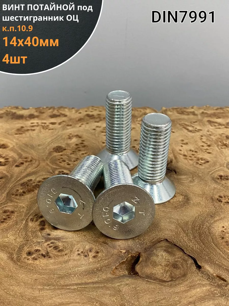 Винт потайной 14х40 под шестигранник ОЦ DIN7991к.п.10.9, 4шт