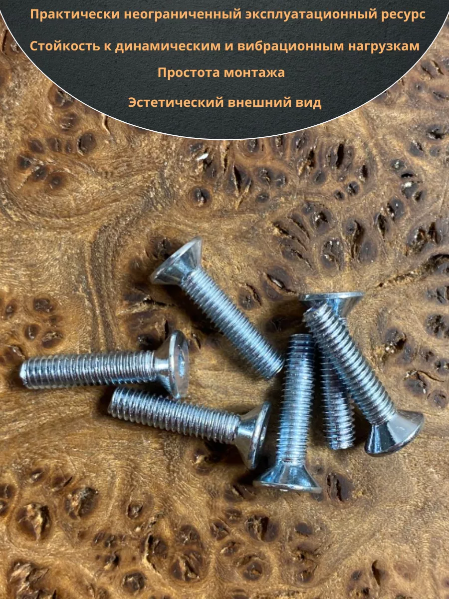 Винты с потайной головкой предназначены для скрепления деталей в конструкциях с высокими требованиями к безопасности и эстетичности. Особая конусная форма головки позволяет “спрятать” ее в прикрепляемой детали. При этом поверхность головки находится в одной плоскости с поверхностью детали. Крепёж с такими свойствами высоко востребован в машино-, автомобилестроении, при сборке бытовой техники, в приборостроении. Конструкция винта DIN 7991 включает стержень с метрической резьбой, потайную головку и шестигранное углубление под ключ для передачи крепежному изделию крутящего момента. Шестигранный внутренний диаметр углубления дает возможность подавать гораздо большее усилие при установке в контакте с ключом или битой. Винты DIN 7991 могут изготавливаться из углеродистых и легированных сталей