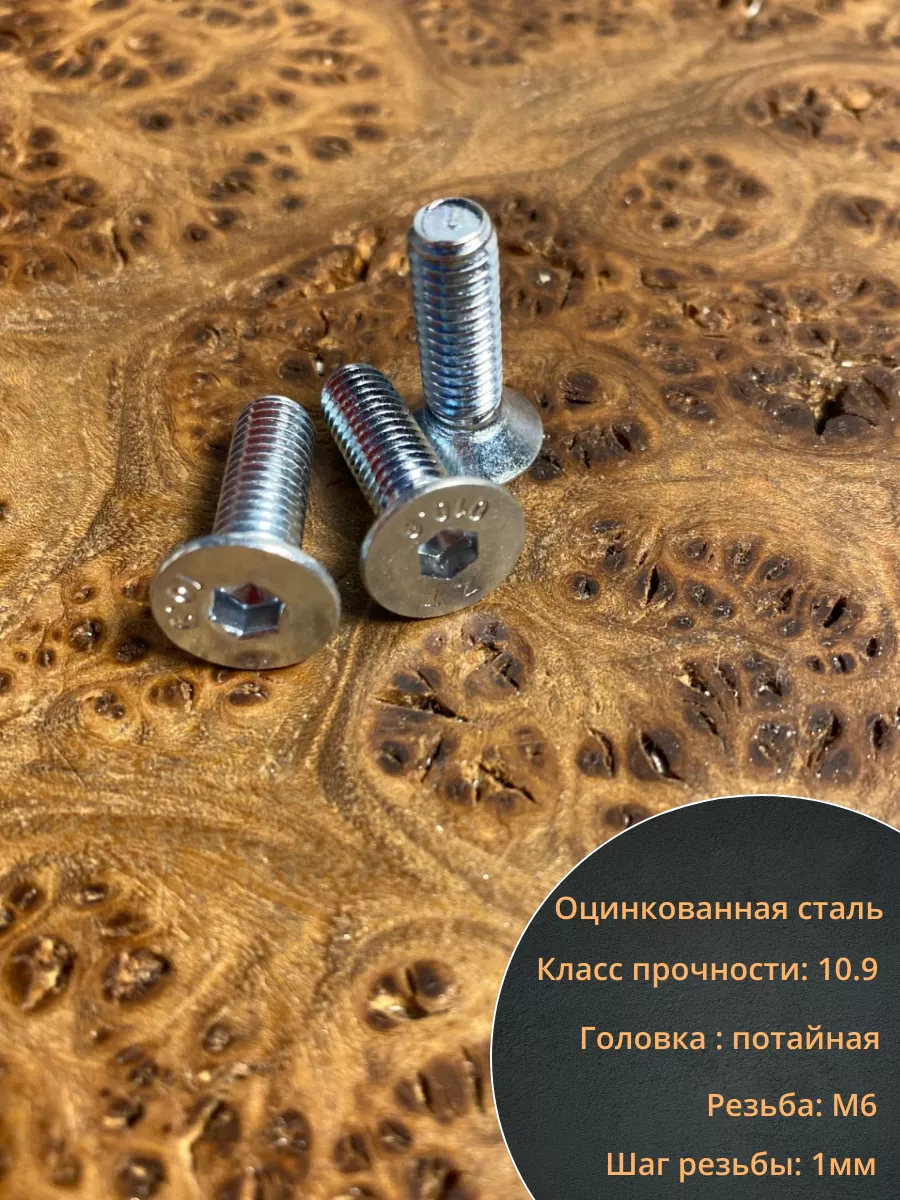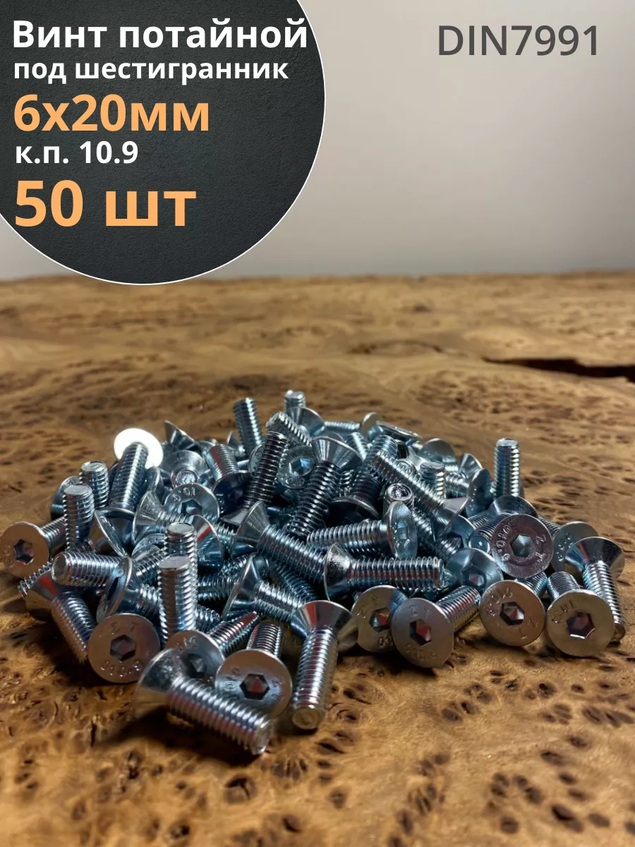 Винт потайной 6х20 под шестигранник ОЦ DIN7991 к.п.10.9,50шт