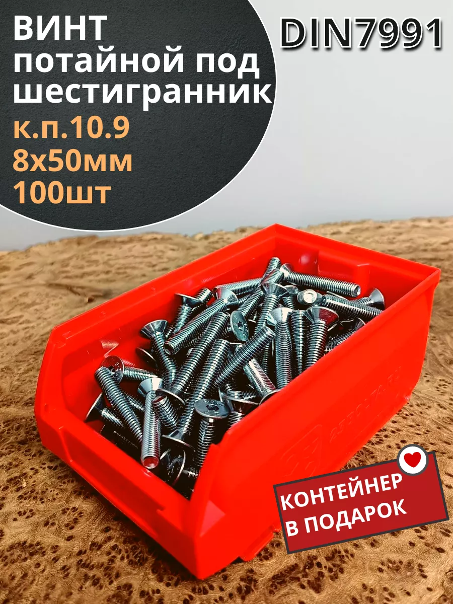 Винт потайной 8х50 ОЦ DIN7991к.п.10.9,100шт контейнер