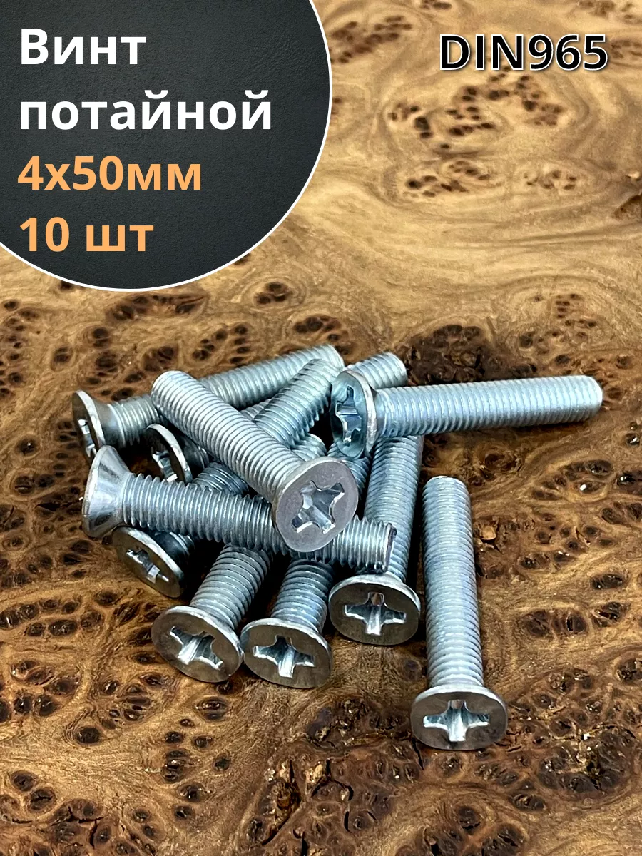 Винт потайной оцинкованный 4х50 DIN965, 10 шт.