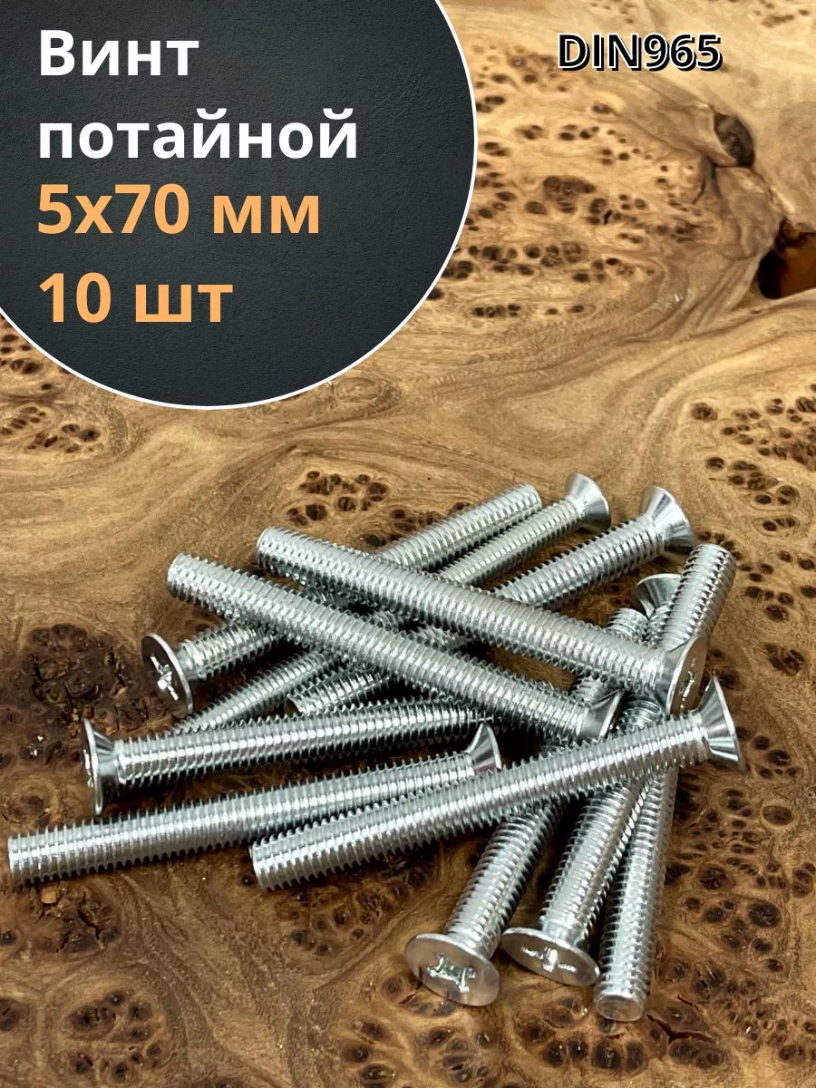 Винт потайной оцинкованный 5х70 DIN965, 10 шт.
