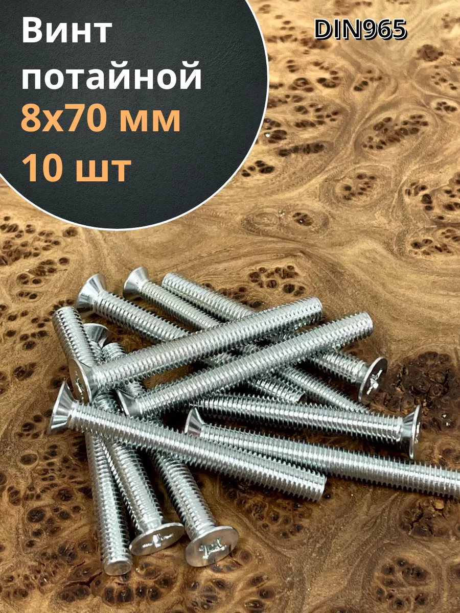 Винт потайной оцинкованный 8х70 DIN965, 10 шт.