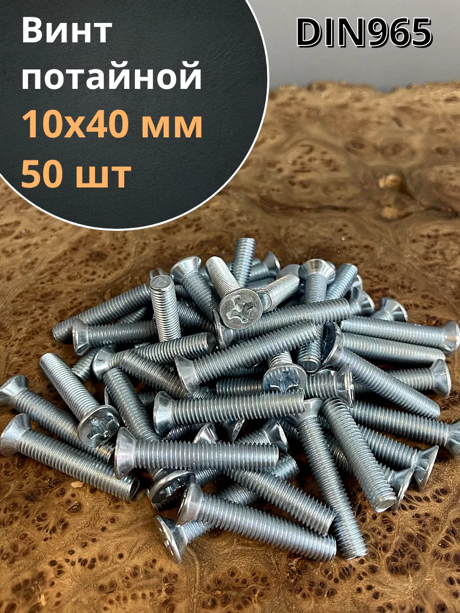 Винт потайной оцинкованный 10х40 DIN965, 50 шт.