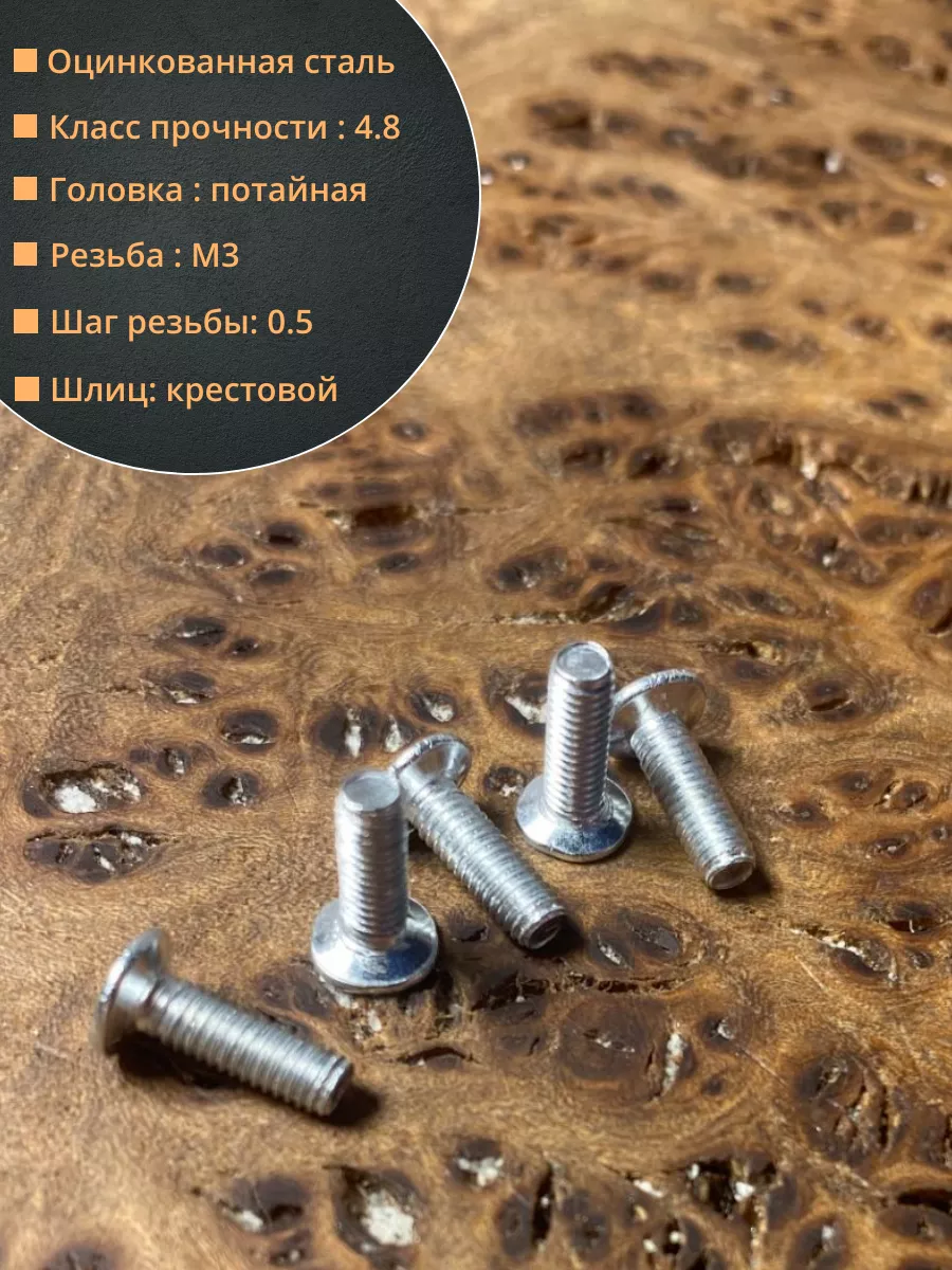 Винт потайной оцинкованный 3х12 DIN965, 10 шт.