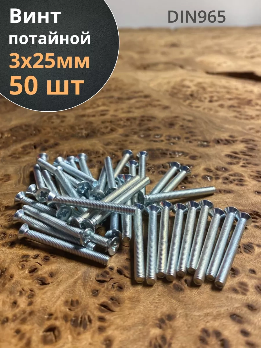 | Винт потайной оцинкованный 3х25 DIN965, 50 шт. | 22005 | 1 шт. |