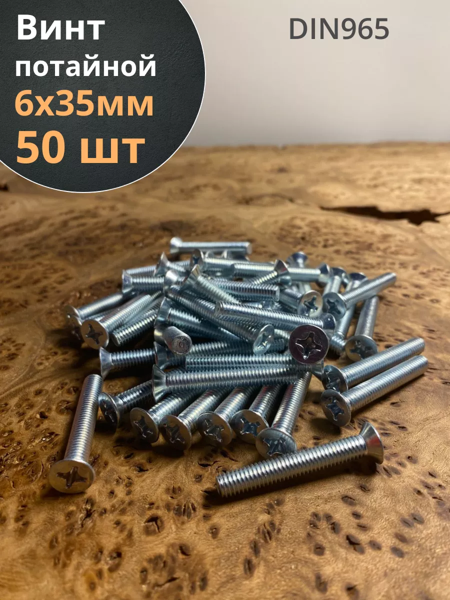 Винт потайной оцинкованный 6х35 DIN965, 50 шт.