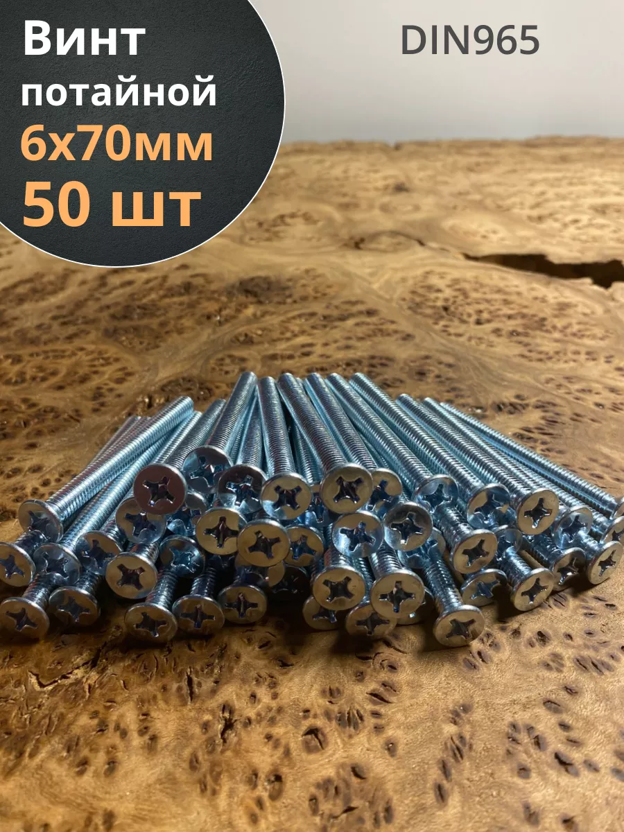 Винт потайной оцинкованный 6х70 DIN965, 50 шт.