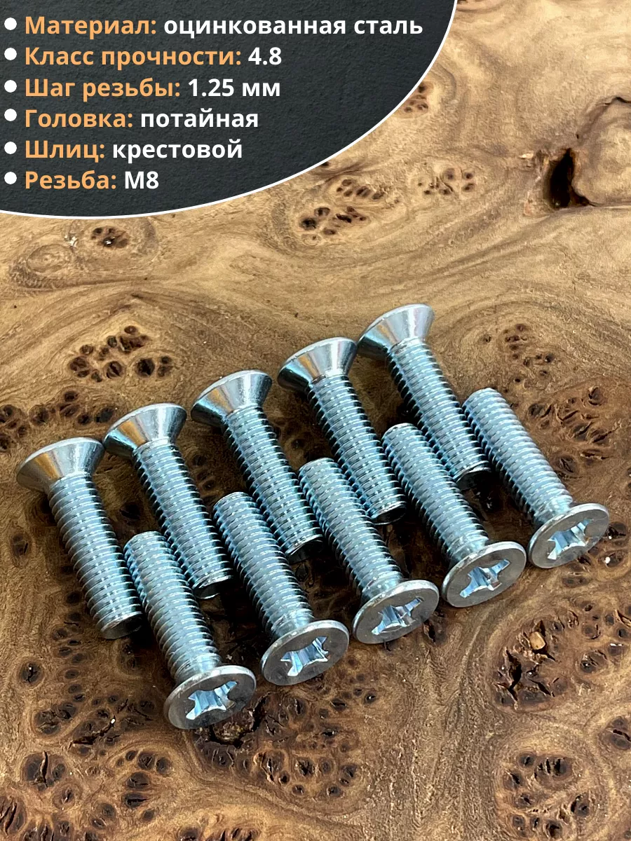 Винт потайной оцинкованный 8х20 DIN965, 10 шт.