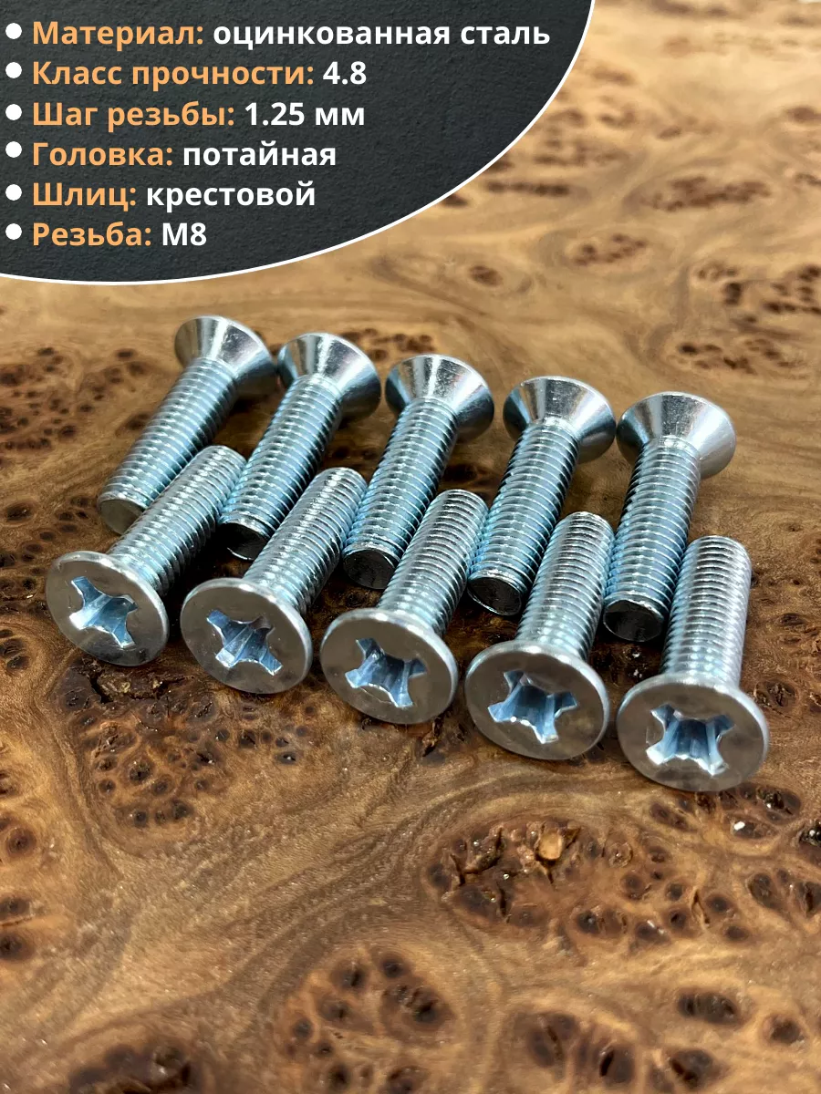 Винт потайной оцинкованный 8х30 DIN965, 50 шт.