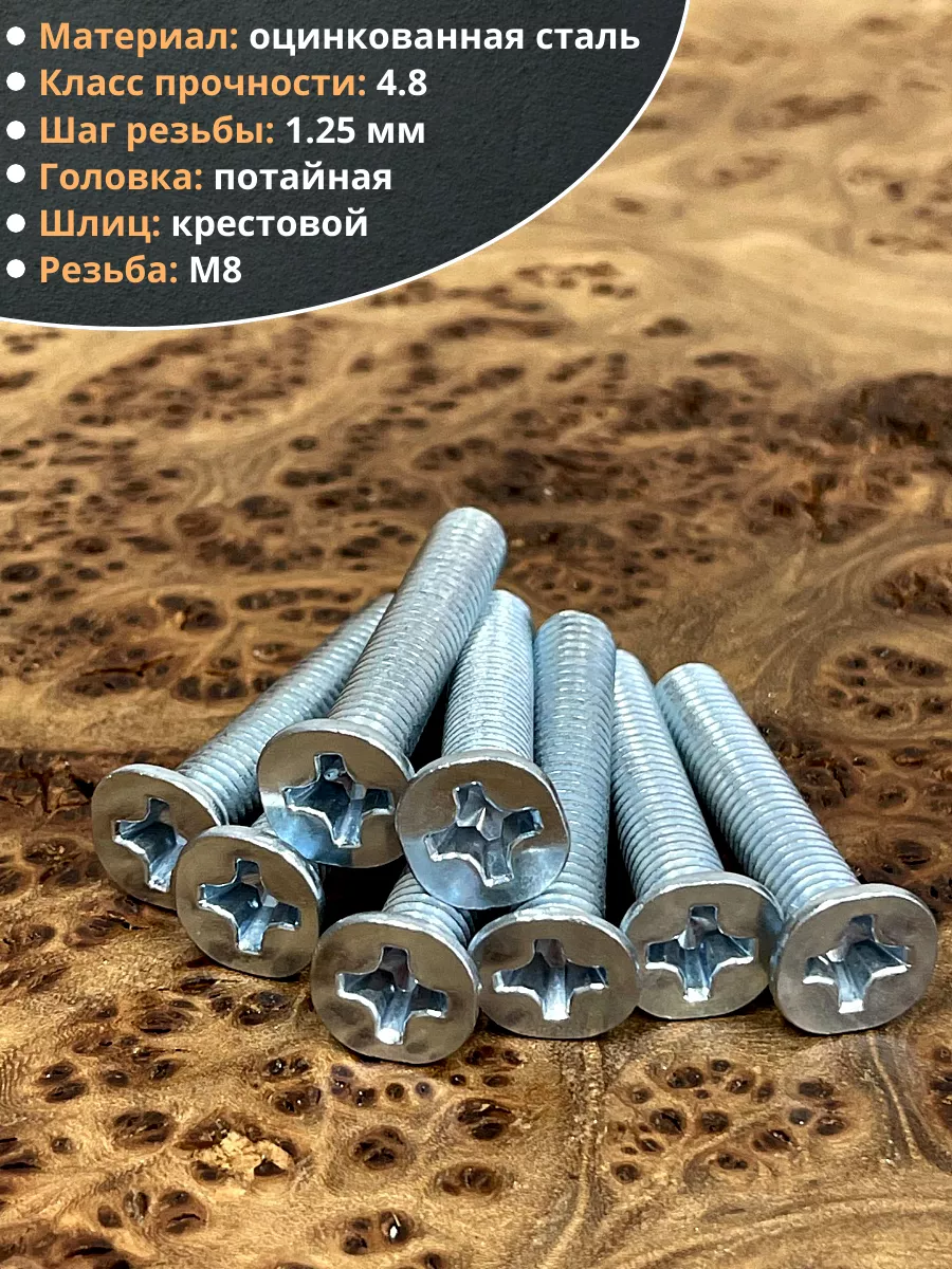 Винт потайной оцинкованный 8х45 DIN965, 50 шт.