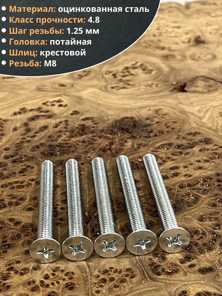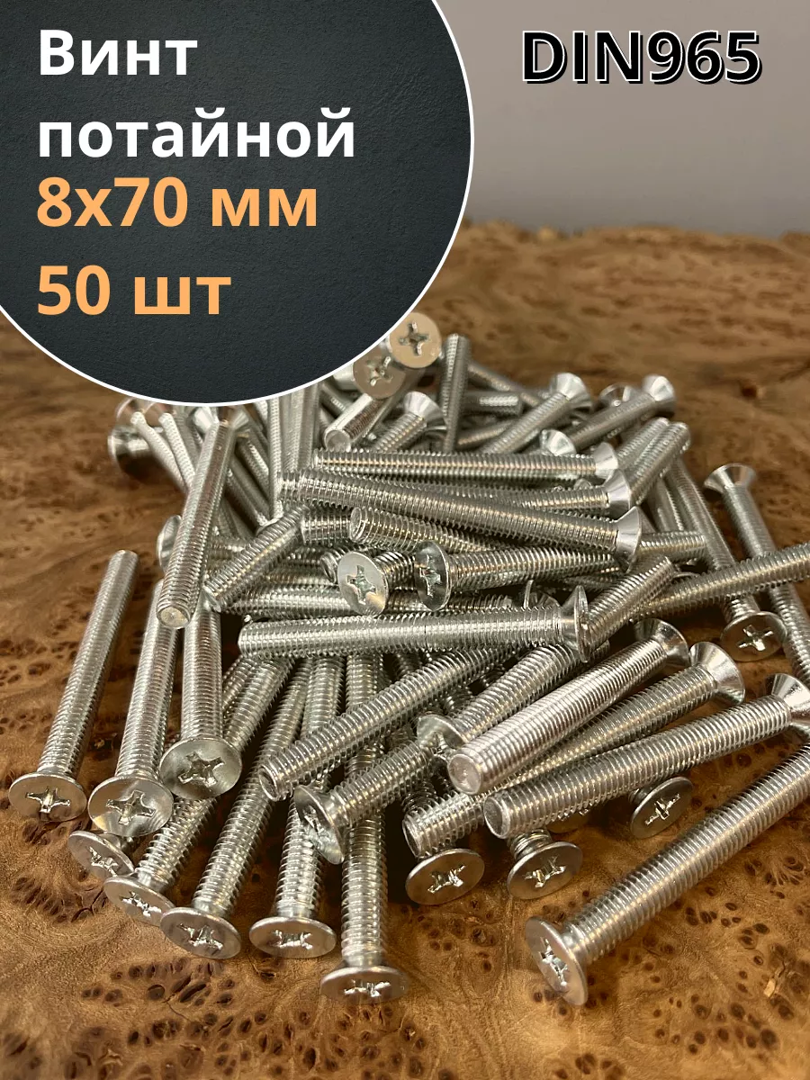 Винт потайной оцинкованный 8х70 DIN965, 10 шт. вп870мр 1 шт.
