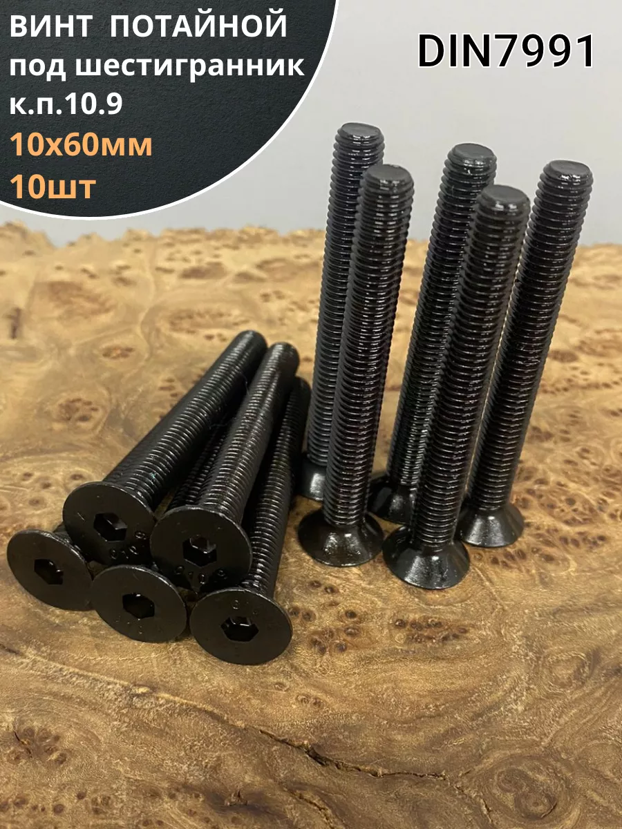 Винт потайной под шестигранник 10х60 DIN7991 к.п.10.9,10 шт.