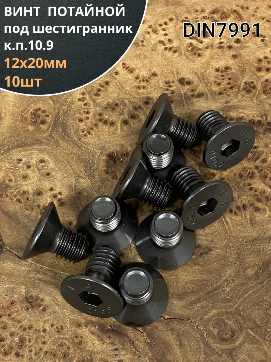 Винт потайной под шестигранник 12х20 DIN7991 к.п.10.9,10 шт.