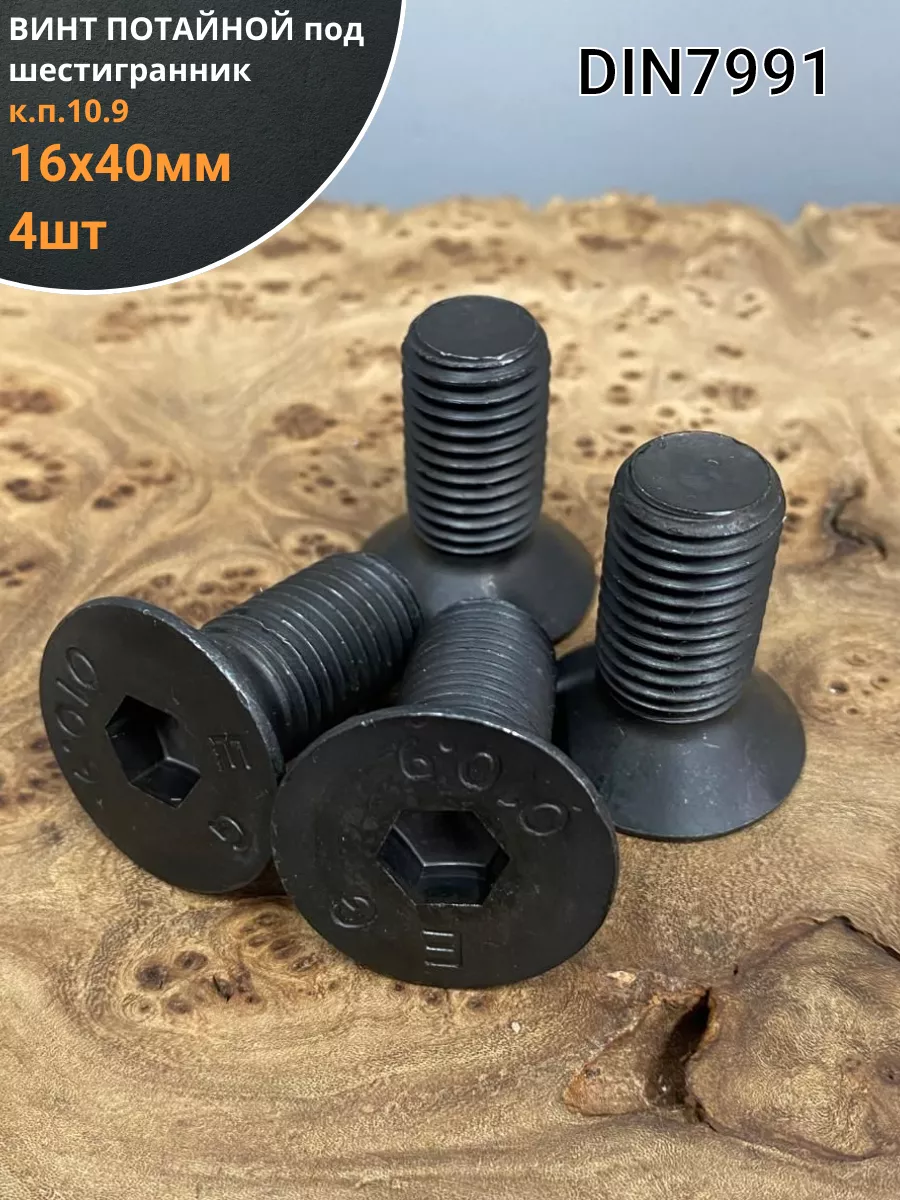 Винт потайной под шестигранник 16х40 DIN7991 к.п.10.9, 4шт