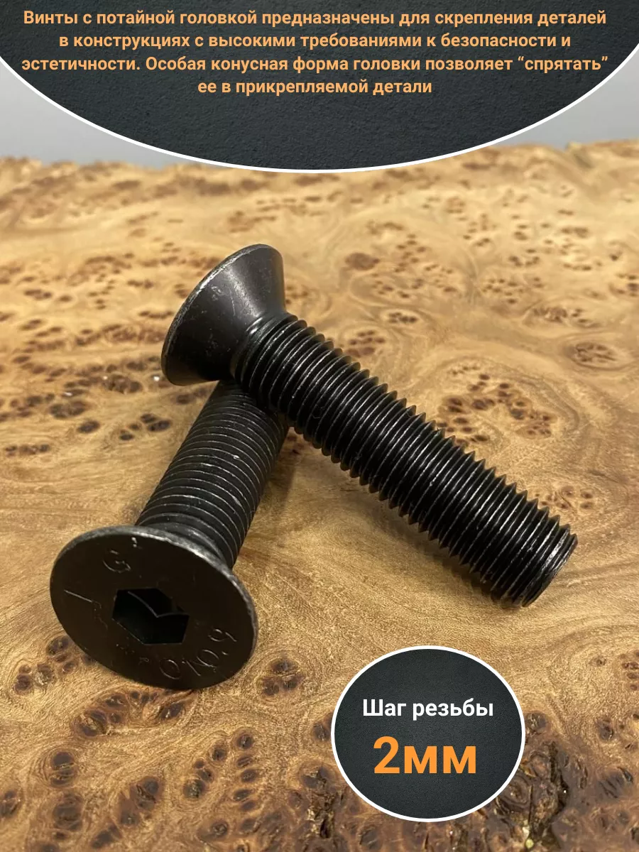 Винт потайной под шестигранник 16х70 DIN7991 к.п.10.9, 4шт