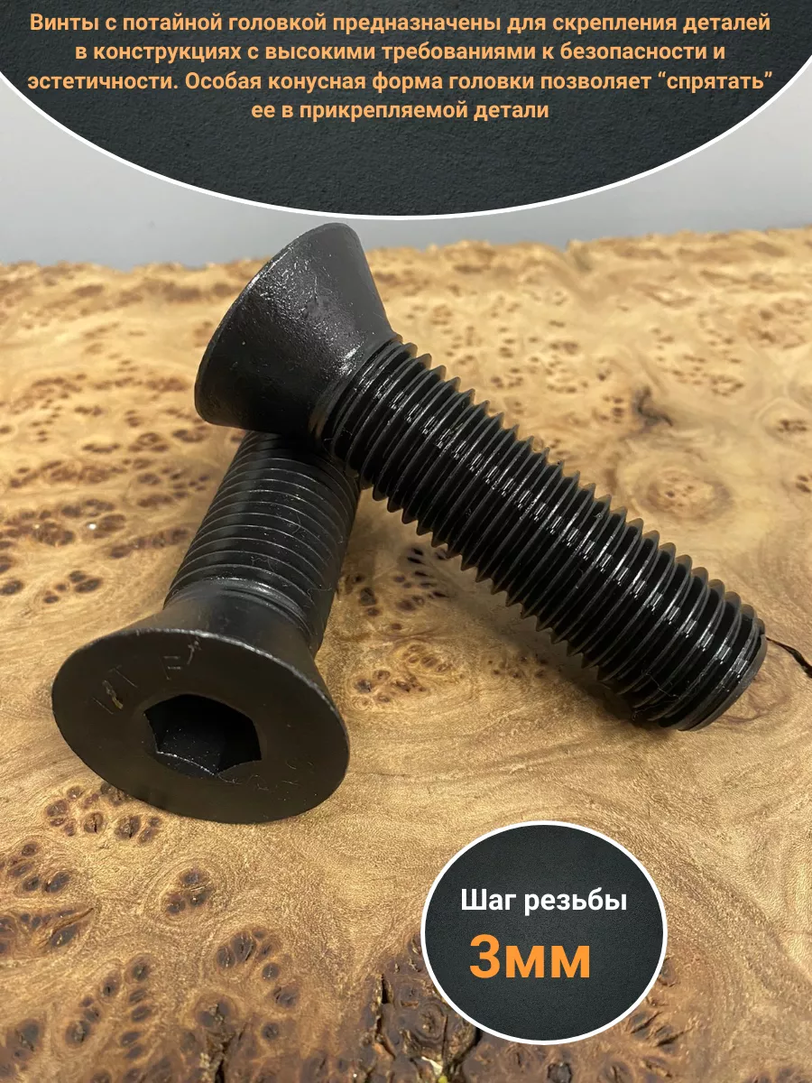 Винт потайной под шестигранник 24х100 DIN7991 к.п.10.9, 2шт