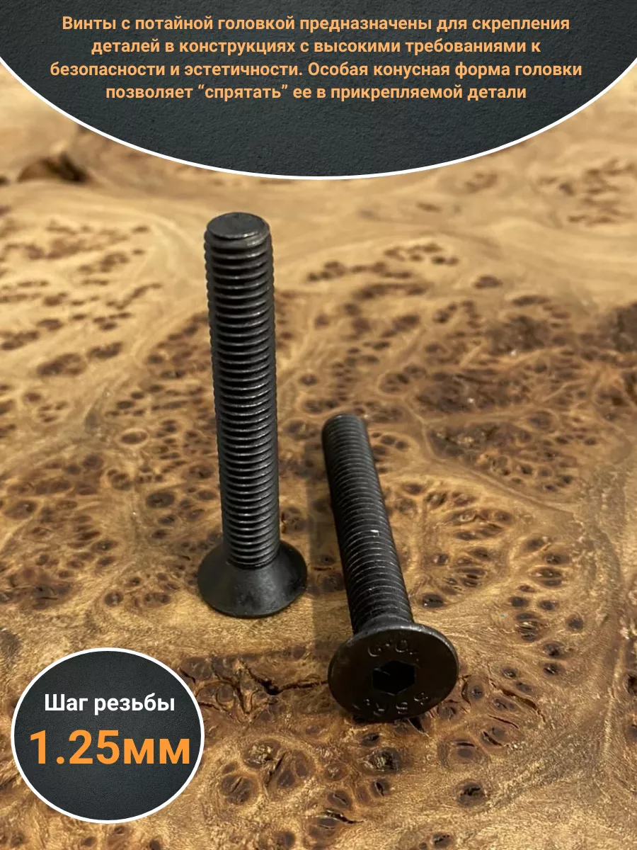 Винты с потайной головкой предназначены для скрепления деталей в конструкциях с высокими требованиями к безопасности и эстетичности. Особая конусная форма головки позволяет “спрятать” ее в прикрепляемой детали. При этом поверхность головки находится в одной плоскости с поверхностью детали. Крепёж с такими свойствами высоко востребован в машино-, автомобилестроении, при сборке бытовой техники, в приборостроении. Конструкция винта DIN 7991 включает стержень с метрической резьбой, потайную головку и шестигранное углубление под ключ для передачи крепежному изделию крутящего момента. Шестигранный внутренний диаметр углубления дает возможность подавать гораздо большее усилие при установке в контакте с ключом или битой. Винты DIN 7991 могут изготавливаться из углеродистых и легированных сталей