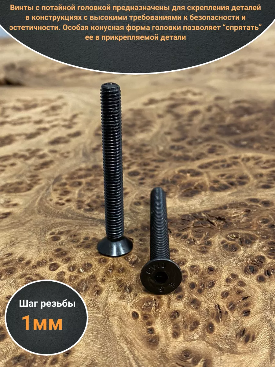 Винт потайной под шестигранник 6х55 DIN7991 к.п.10.9, 10 шт.
