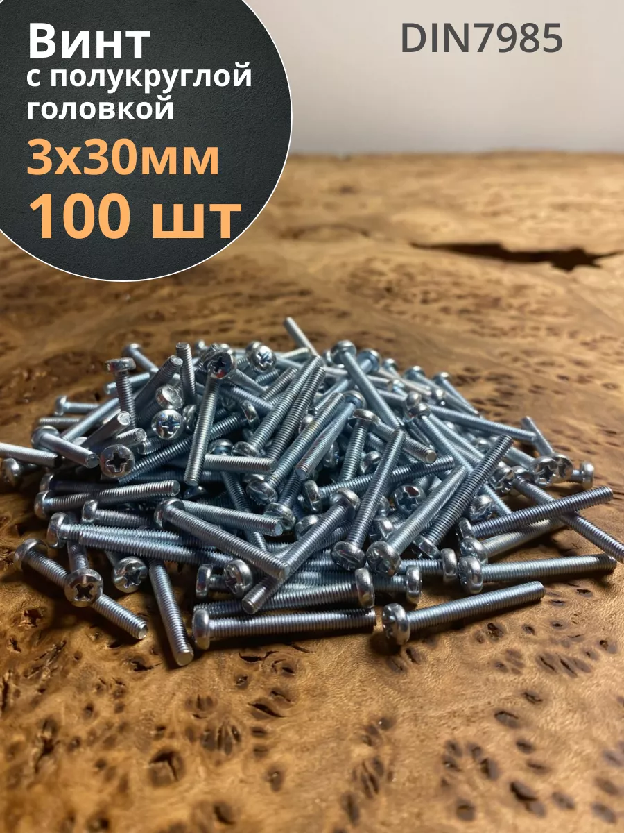 Винт с полукруглой головкой М3х30 ОЦ DIN7985, 100 шт.