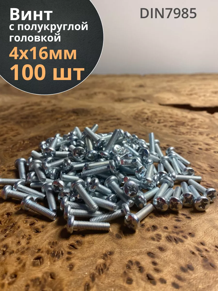 Винт с полукруглой головкой М4х16 ОЦ DIN7985 , 100 шт.