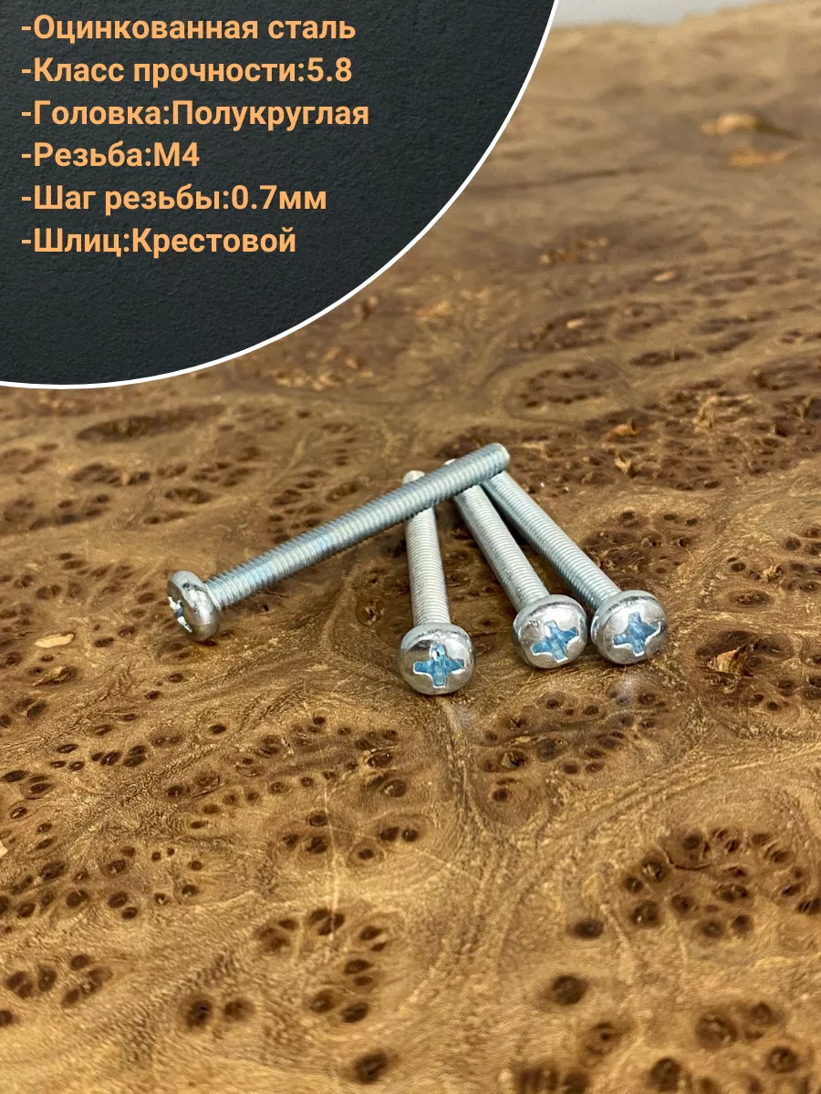 Винт с полукруглой головкой М4х40 ОЦ DIN7985, 50 шт.
