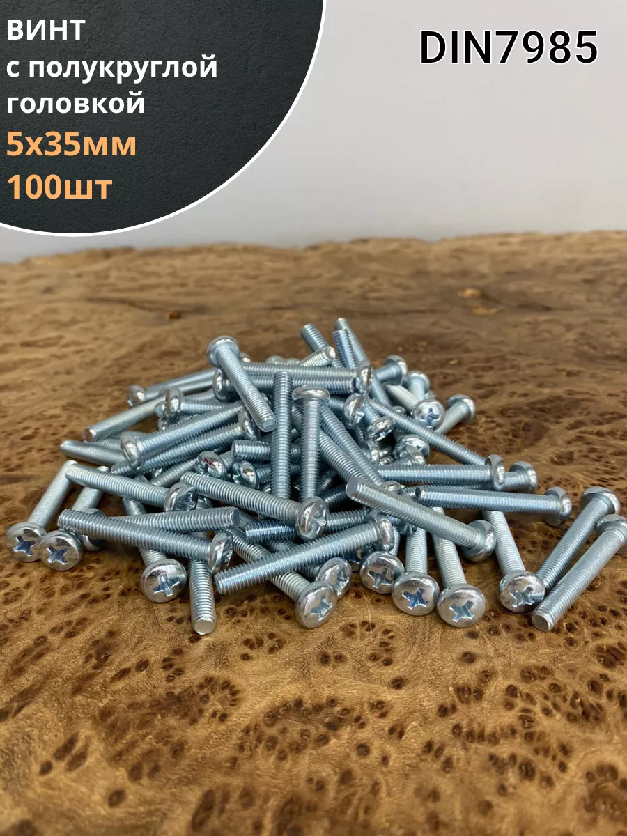 Винт с полукруглой головкой М5х35 ОЦ DIN7985, 100 шт.
