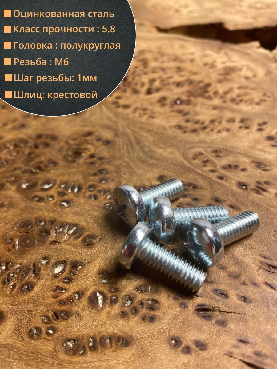 Винт с полукруглой головкой М6х16 ОЦ DIN7985, 10 шт.