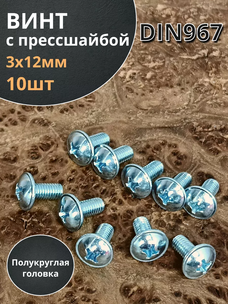 Винт с прессшайбой М3х12 полукруглая головка DIN967, 50 шт. вп312ф50 1 шт.