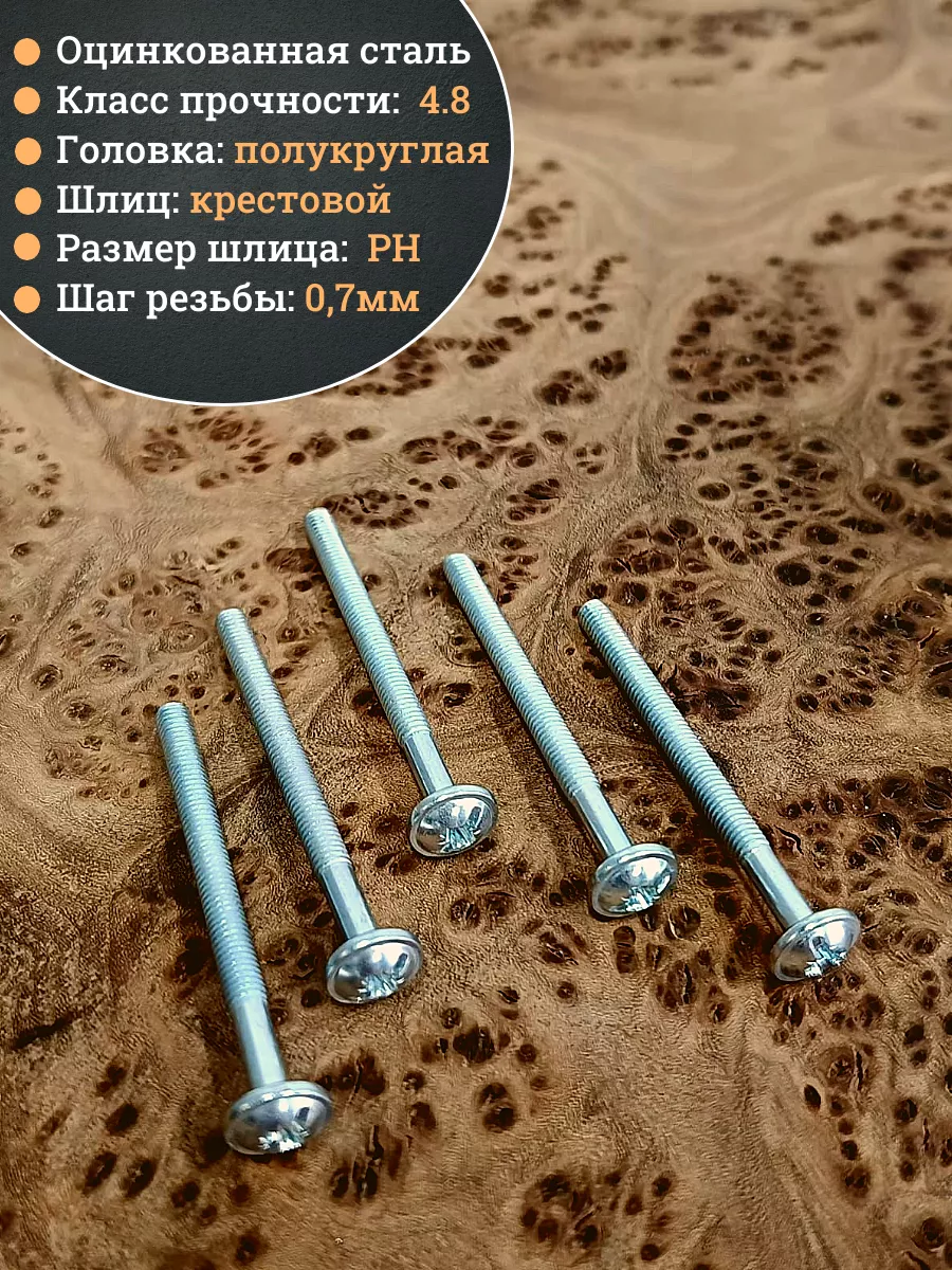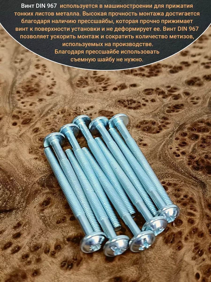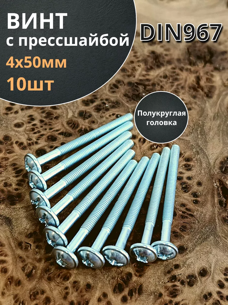 Винт с прессшайбой М4х50 мебельный DIN967, 10 шт.