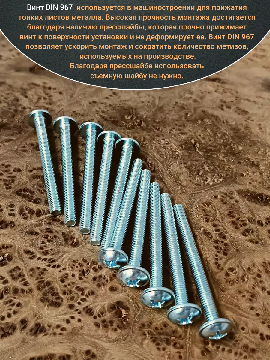 Винт с прессшайбой М4х70 мебельный DIN967, 10 шт. вм470мф 1 шт.
