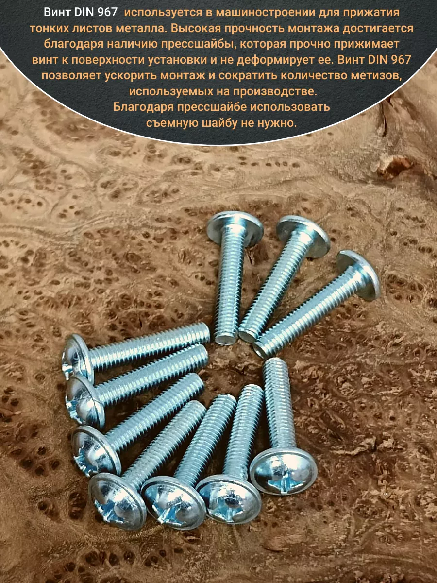 | Винт с прессшайбой М5х25 мебельный DIN967, 10 шт. | вм525ф | 1 шт. |