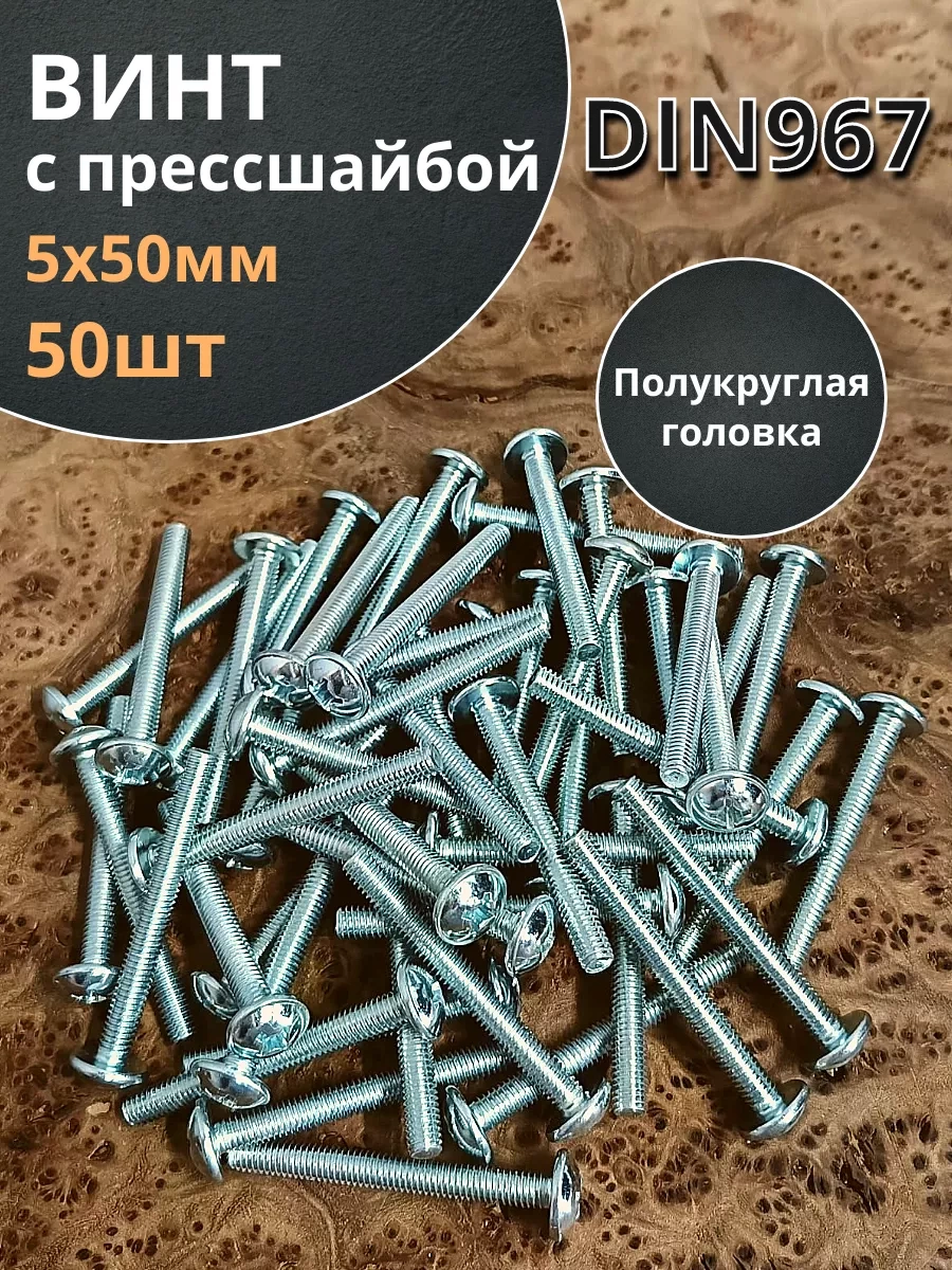 | Винт с прессшайбой М5х50 мебельный DIN967, 50 шт. | вм550фф50 | 1 шт. |