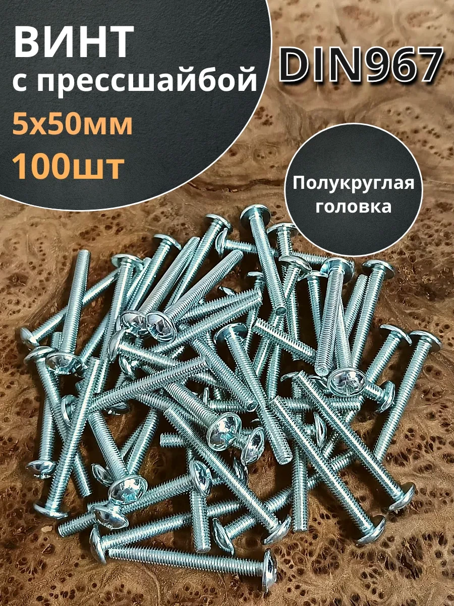 | Винт с прессшайбой М5х50 мебельный DIN967, 100 шт. | вм550фф100 | 1 шт. |