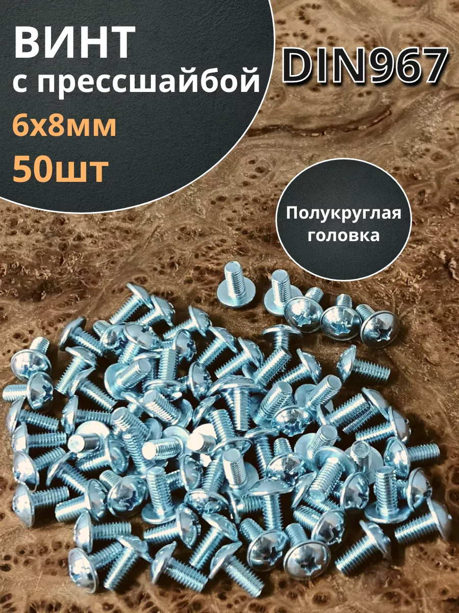 Винт с прессшайбой М6х8 полукруглая головка DIN967, 50 шт.