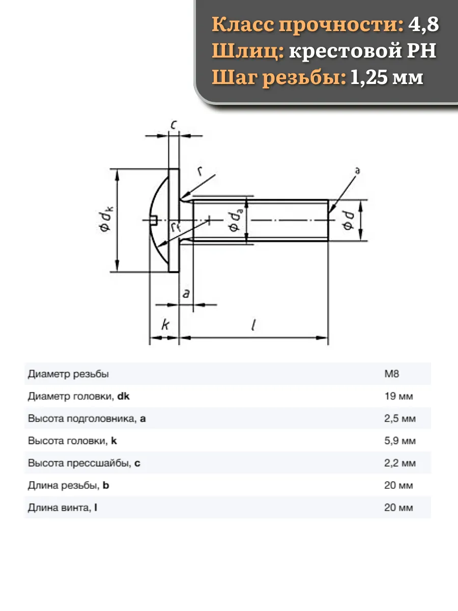 Винт с прессшайбой М8х20 DIN967 с гайкой фланец, 20 шт.