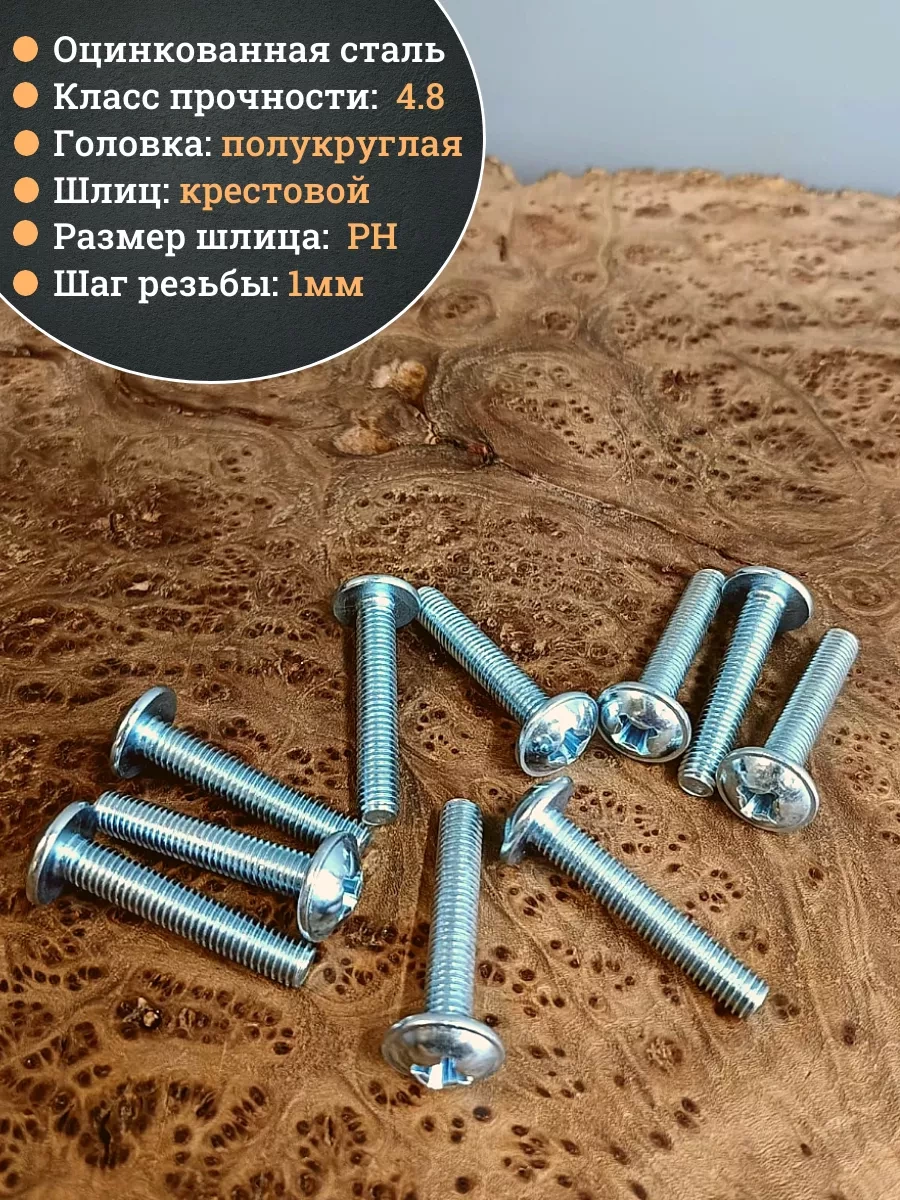 Винт мебельный с полукруглой головкой и прессшайбой, применяется при строительных работах, в машиностроении. Используется для монтажа из металла, пластика и древесины твердых пород. Монтаж производится в заранее подготовленное отверстие с применением гайки соответствующего диаметра, или применятся для вкручивания в различные резьбовые отверстия при монтаже.