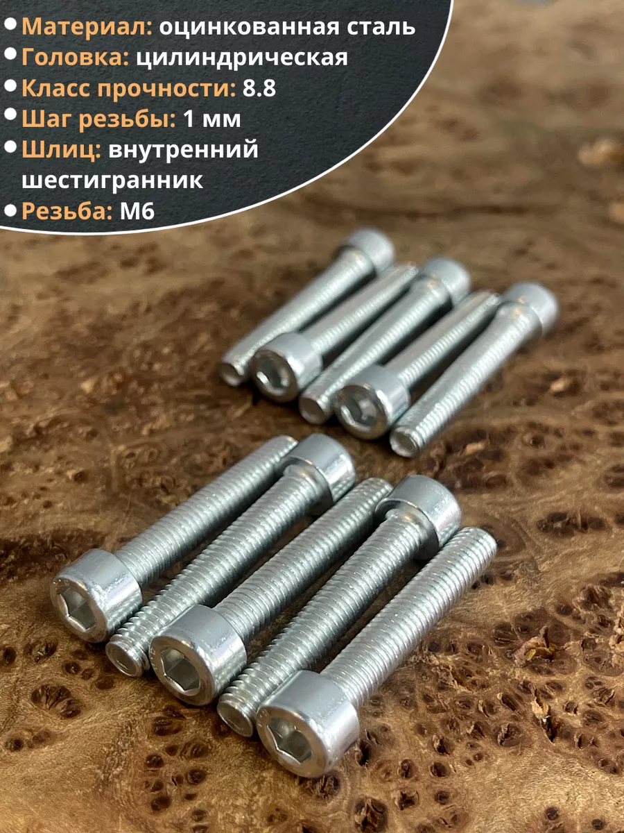Винт под шестигранник ПР 6х35 мм ОЦ к.п.8.8 DIN912, 10 шт.