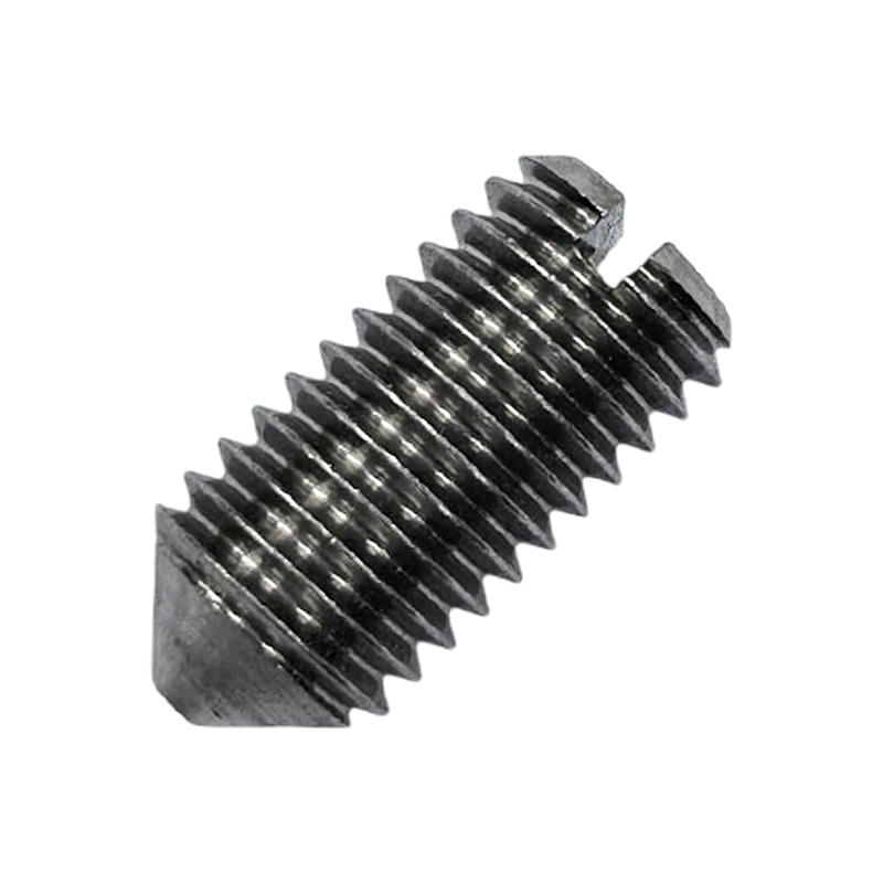 Стопорный винт с коническим концом и прямым шлицем предназначен для создания соединений, которые не работают на растяжение. Он широко используется в машиностроении и приборостроении для фиксации шестерёнок, подшипников, колец, втулок на валах.
