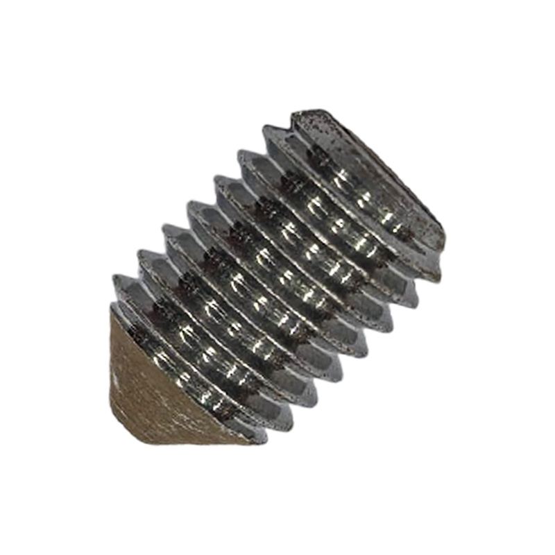 Установочный острый винт DIN 553 (ISO 7434) — это полнорезьбовой винт без головки с коническим концом и шлицем на торце под плоскую отвёртку. Он предназначен для скрепления элементов конструкции и их надёжной фиксации друг относительно друга. Винт обладает высокой вращающей и осевой удерживающей способностью.