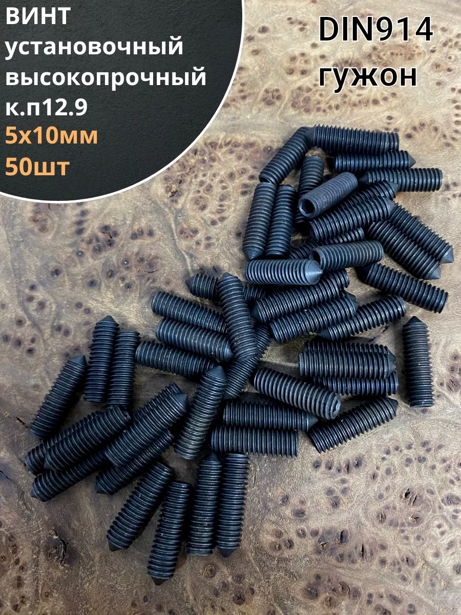 Винт установочный М5х10 мм к.п12.9 DIN914 ( гужон) 50шт